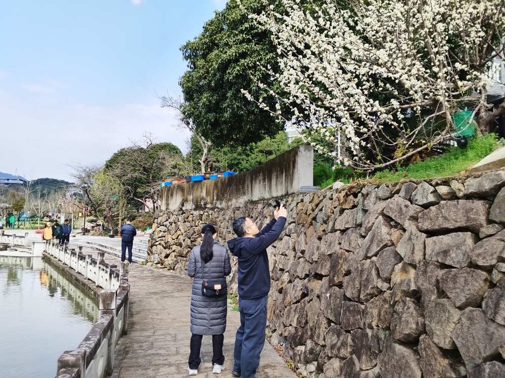 漫步公園時,路邊桃花、茶花也紛紛映入眼簾,還有不知名的小花,為了了解花的名稱,大家拿出手機(jī),用百度“識萬物”功能拍照查詢,“喔,原來這花是梨花”,其中一位員工高興的說到。